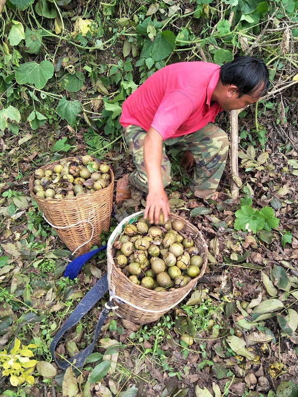 由临沧市核桃科学技术研究所实施的中央财政林业科技推广示范《临宝核桃良种栽培及提质增效示范与推广》项目,自2015年12月实施以来,示范基地通过科学施肥管理、陡坡逐年垒台、树盘覆盖改土、林下科学套种、科学整形修剪、病虫综合防治等技术措施,核桃产量大幅提升。目前核桃已成熟,市核桃所技术人员为了检验项目实施效果,掌握项目区核桃产量,于2017年9月26日至27日深入凤庆县小湾镇箐中村项目区开展核桃产量测定工作。技术人员根据小班分布情况,采取棋盘式布点法,按照1.5%比例选定标准地,然后在选定的标准地内根据不同树龄、不同生长情况采取"五点取样方法"抽取10株样树进行测产。测产指标主要包括树龄、地径、树高、结果主枝数、单株鲜果数、单株鲜果产量。根据所测定的数据,项目区核桃产量较去年提高了15%左右,单株鲜果产量达196.60公斤,项目实施已初显成效。(临沧市核桃科学技术研究所, 唐永奉 许映芬)